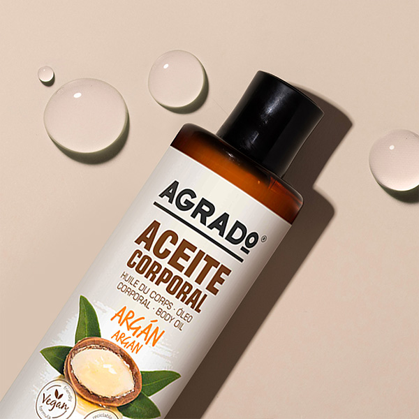 AGRADO Argan Body Oil moisturises and softens the skin, leaving it smooth and silky to the touch. Enriched with vitamin E, which has antioxidant properties, and argan oil. Can be applied to damp skin, making it very convenient for everyday hydration. Dermatologically tested.