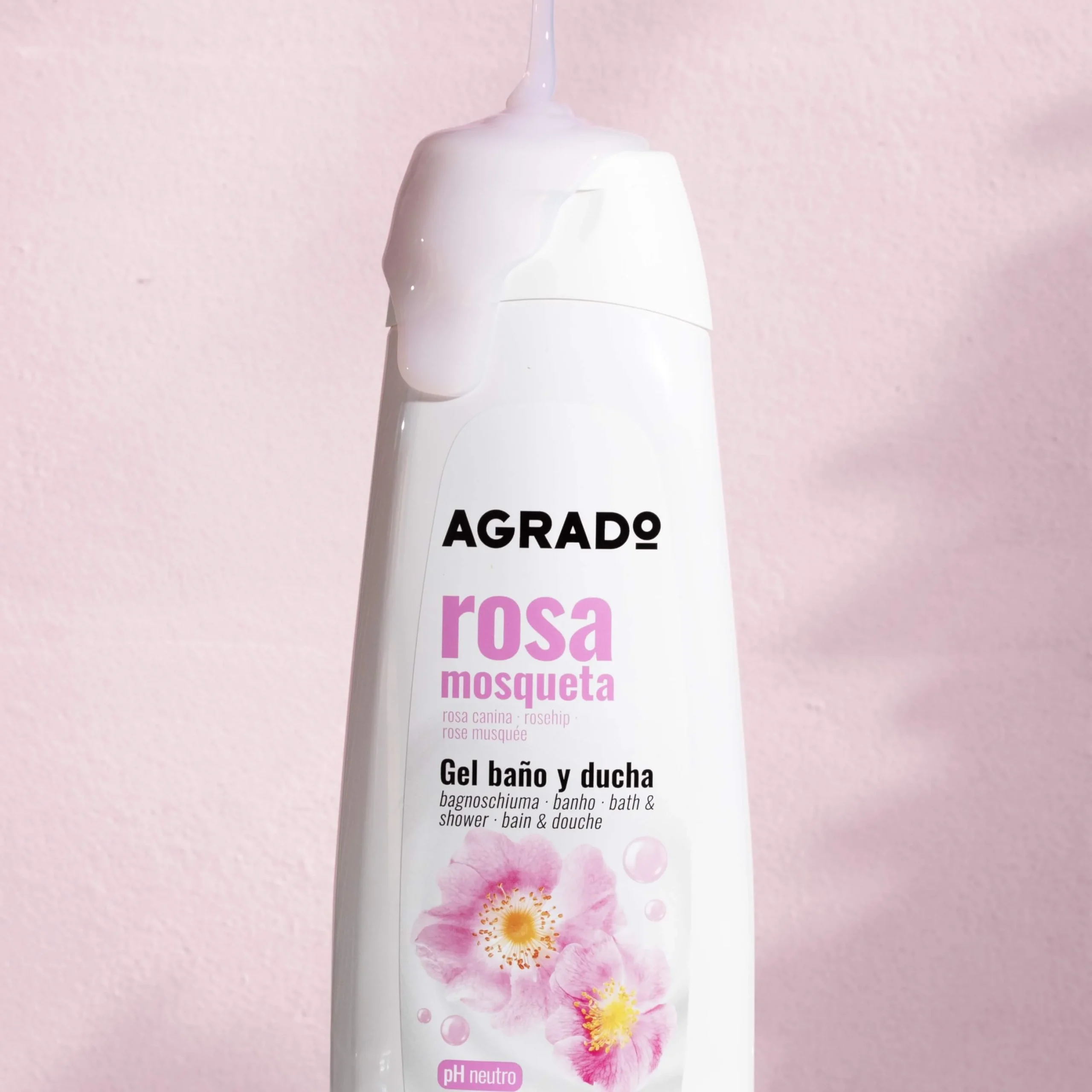 AGRADO Rosehip Bath and Shower Gel is made with rosehip oil, an ingredient that cares for skin. Suitable for daily use on all skin types thanks to its neutral pH. Dermatologically tested.