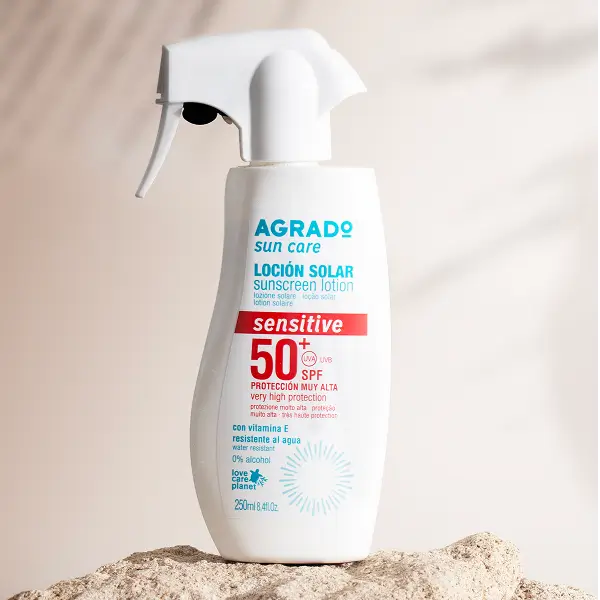 Lozione solare con protezione molto alta SPF50+ di facile applicazione con dispenser, assorbimento rapido e protezione immediata. Indicata per idratare e proteggere le pelli chiare e sensibili e prevenire le scottature solari. Senza profumo. Contiene vitamina E. Resistente all’acqua e 0% alcol.