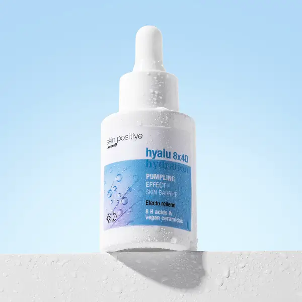Con Acido Ialuronico 8x: una combinazione di 8 tipi di HA a basso e alto peso molecolare con diverse proprietà che penetrano nei diversi strati della pelle, per reintegrare l'acqua dall'esterno e trattenerla dall'interno.